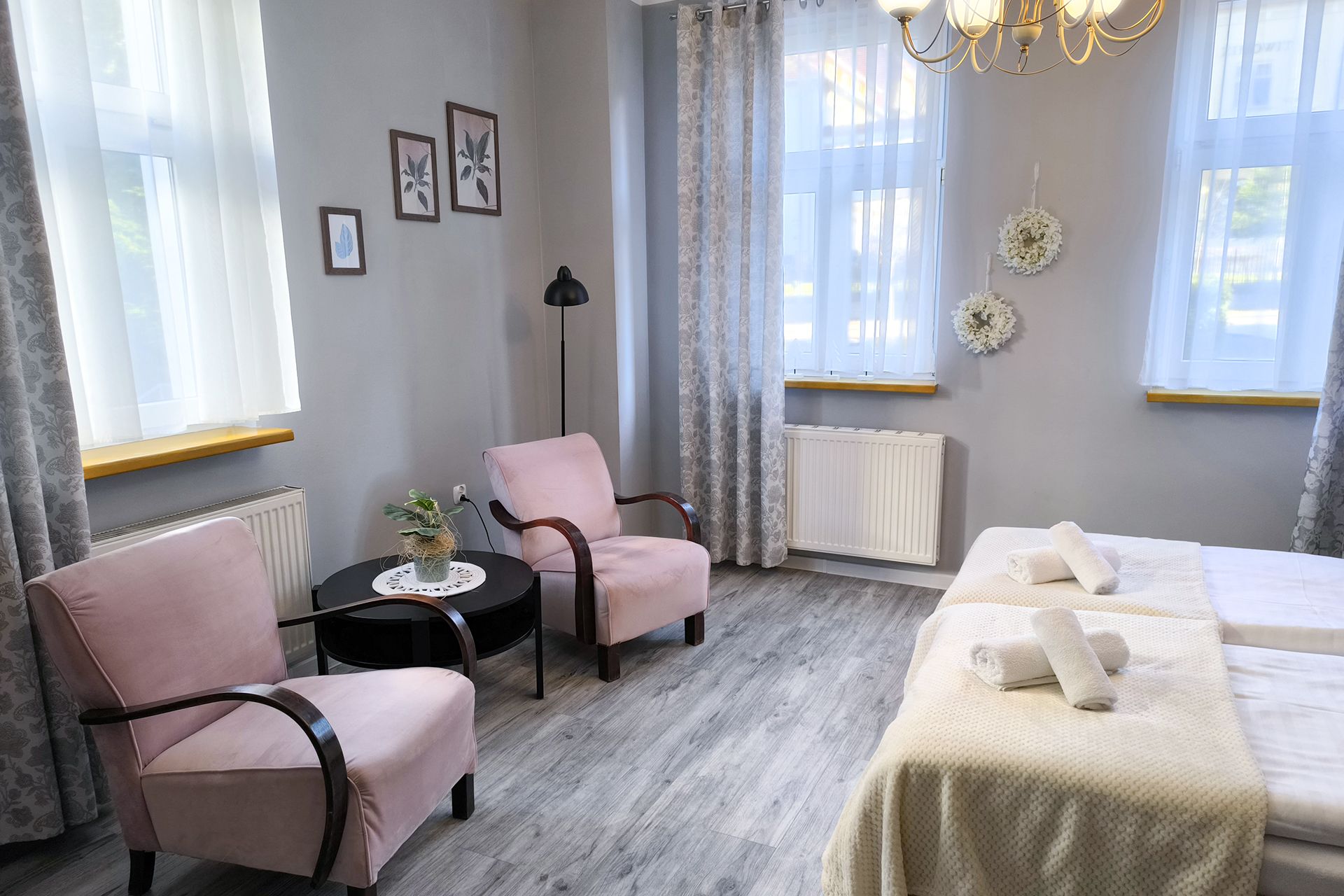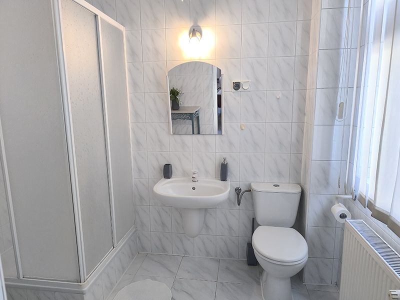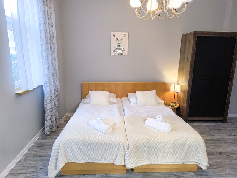 Pokój dla 2 os. z łazienką wyposażoną w wc, kabinę prysznicową, mydło, ręcznik. W pokoju TV. Powierzchnia pokoju z łazienką ok 17 m kw. Pokój nie posiada balkonu. W pokoju jedno łóżko małżeńskie i pojedyncze lub dwa pojedyncze. Na terenie obiektu WiFi zabezpieczone hasłem. Parking obok obiektu.
